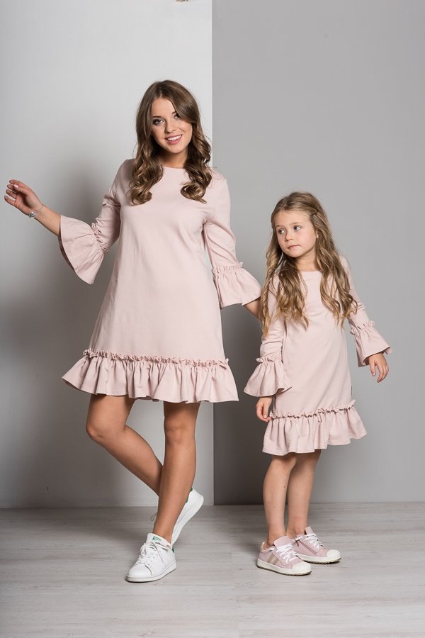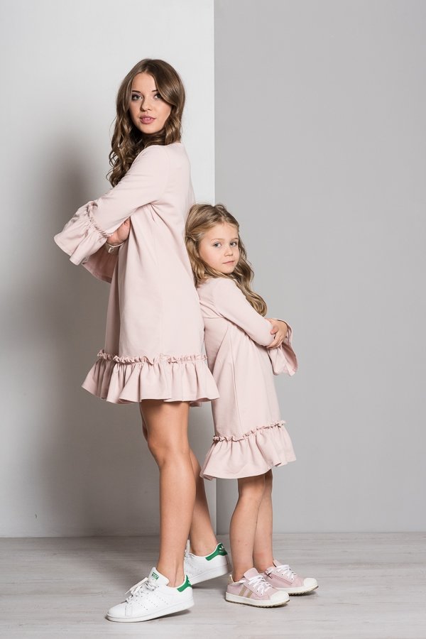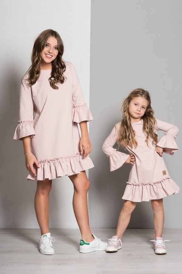 Stylové dámské šaty s romantickým nádechem. Věřte, že se v nich budete cítit velmi pohodlně a sexy. Mini dámské šaty s 3/4 zvonovými rukávy a spodním rozkošným řasením. V naší nabídce naleznete i přesně tytéž šaty v dětské velikosti a můžete tak vytvořit krásnou kombinaci oblečení šaty mama + dcera.