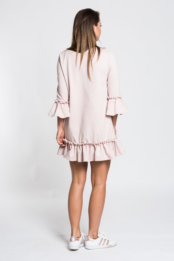 Dámské šaty s 3/4 rukávem Butterfly - pudrově růžové