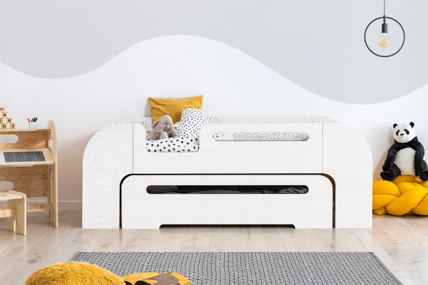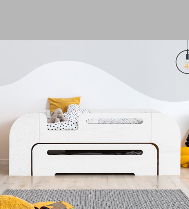 Postel má prostornou přistýlku, což je ideální řešení pro návštěvy nebo rodinné příslušníky. Přistýlka je kompaktní a snadno se vysouvá, čímž vytváří další pohodlné místo ke spaní.
