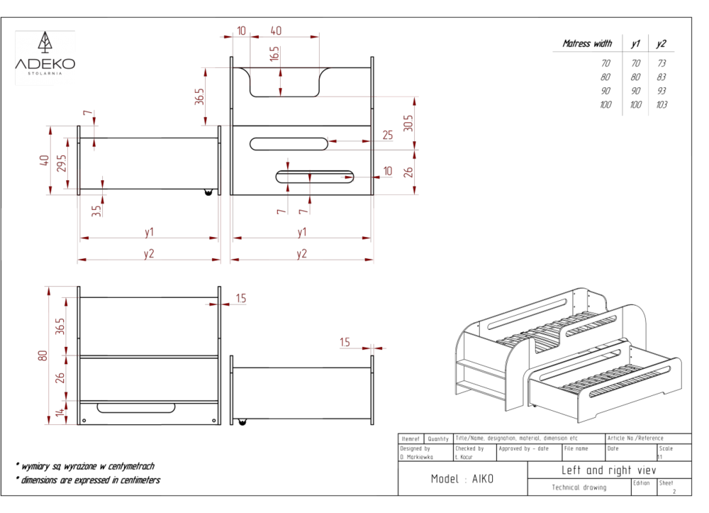 Postel má prostornou přistýlku, což je ideální řešení pro návštěvy nebo rodinné příslušníky. Přistýlka je kompaktní a snadno se vysouvá, čímž vytváří další pohodlné místo ke spaní.