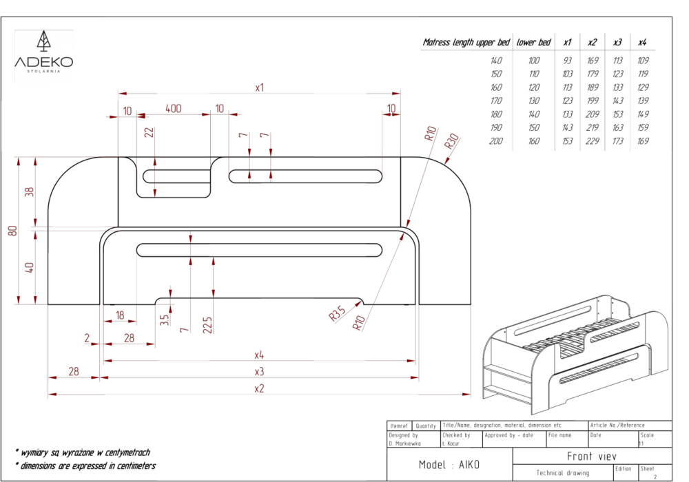 Tuto dětskou postel domeček umíme dodat v těchto velikostech (šířka x délka):
