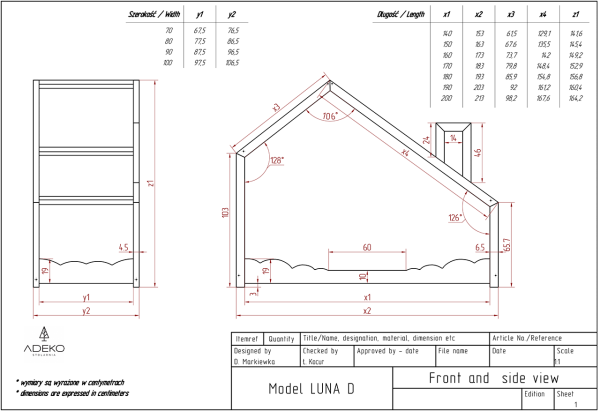 Tuto dětskou postel domeček umíme dodat v těchto velikostech (šířka x délka):
