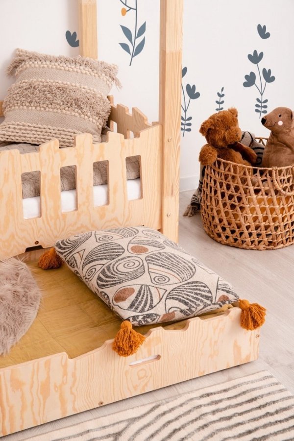 Z každého úhlu pohledu vás tato postel vtáhne do svého světa, kde se starosti rozplývají, jako ranní rosa. Je to místo, kde můžete zcela zapomenout na denní trápení a nechat se unášet vlnou sladkého odpočinku. Vložte se do náruče této domečkové dětské postele a nechte se unést do světa, kde se sní jen nejkrásnější sny. Tato postel je nádhernou branou ke spánkovému dobrodružství, která vám bude dělat společnost každou noc.