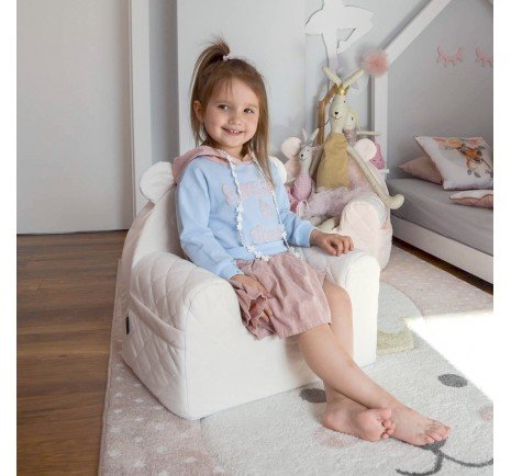 Křesílko je vyrobena z certifikované polyuretanové pěny nejvyšší kvality, která poskytuje pohodlné a stabilní sezení. Odnímatelný kryt je vyroben z příjemného prošívaného hladkého sametu. Křeslo nemá žádné nebezpečné hrany a malé vyčnívající části. Je tak bezpečné, když děťátko posouvá křesílko z místa na místo.
