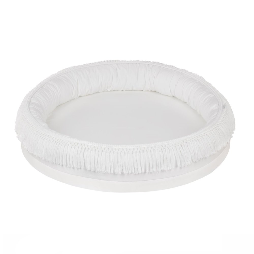 materiál: 69% bavlna, 31% polyester, třásně 100% bavlna, výplň polyesterové kuličky, matrace s certifikátem OEKO-TEX Standard 100