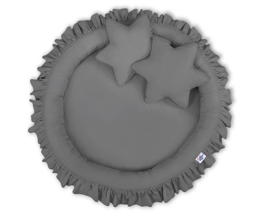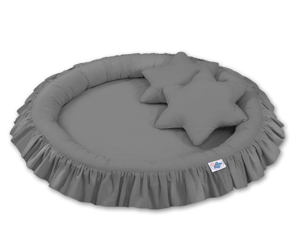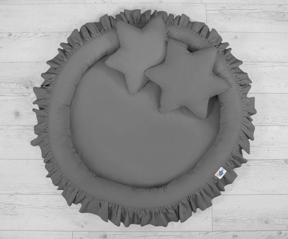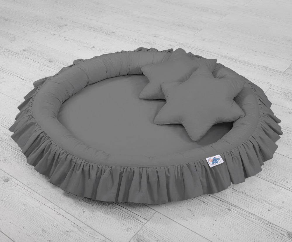Dětské kulaté hnízdo s volánkem, může sloužit od prvních dnů života jako pohodlné a bezpečné místo pro miminko, později jako útulné místo pro hraní. Funkční a praktické hnízdečko může také posloužit jako mini bazén nebo podložka k baldachýnu. Široké, oblé a měkké stěny zajistí bezpečnou zábavu pro každé miminko.