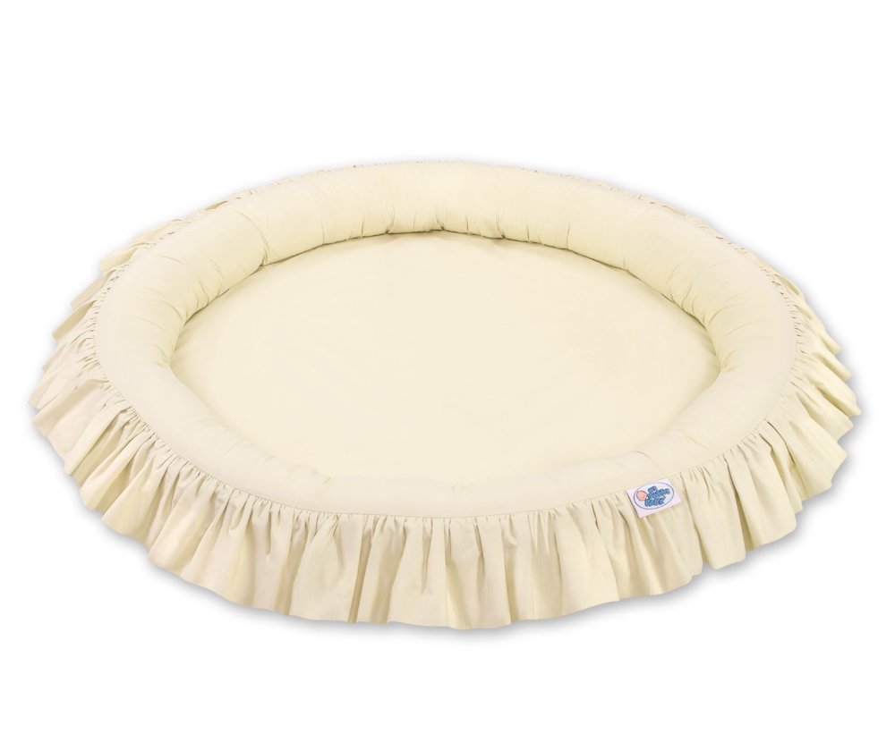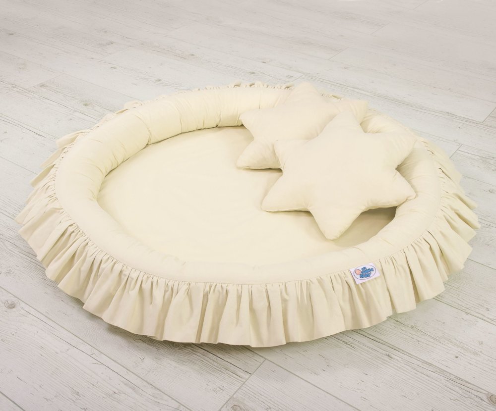 Dětské kulaté hnízdo s volánkem, může sloužit od prvních dnů života jako pohodlné a bezpečné místo pro miminko, později jako útulné místo pro hraní. Funkční a praktické hnízdečko může také posloužit jako mini bazén nebo podložka k baldachýnu. Široké, oblé a měkké stěny zajistí bezpečnou zábavu pro každé miminko.