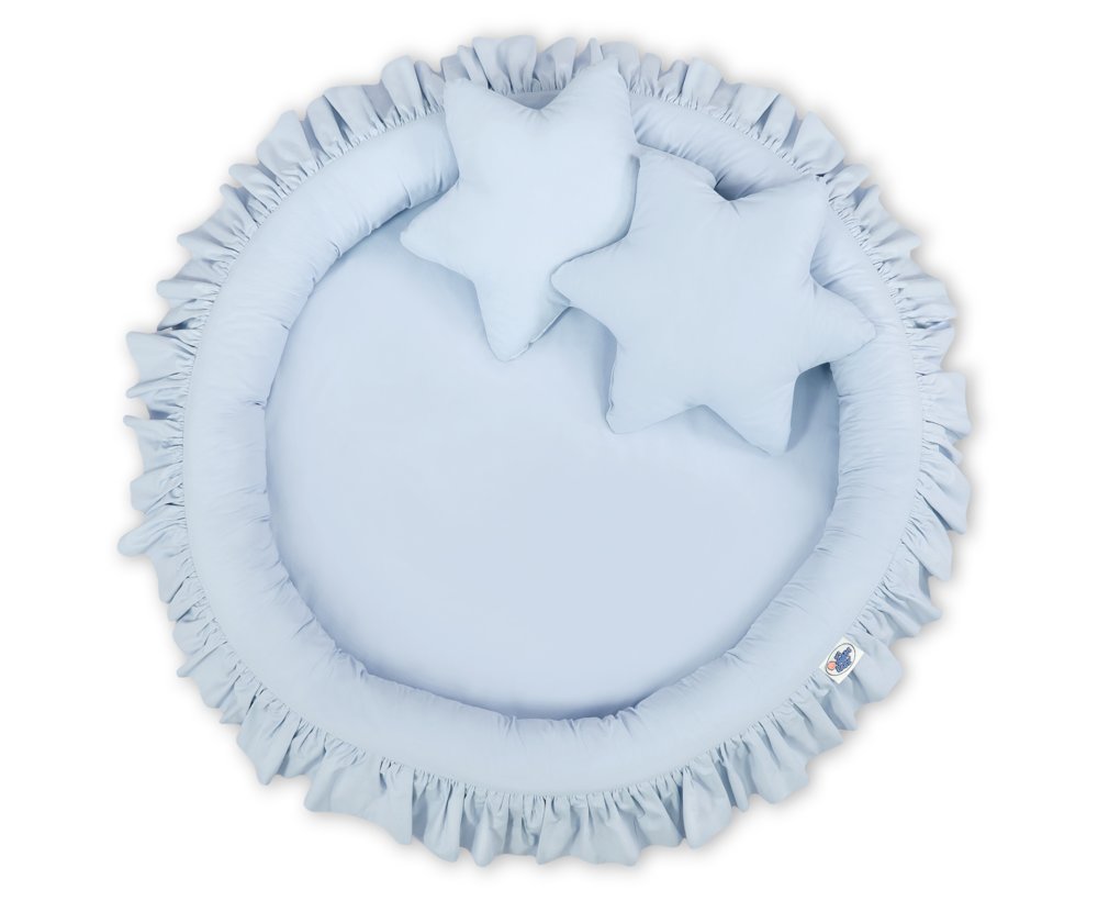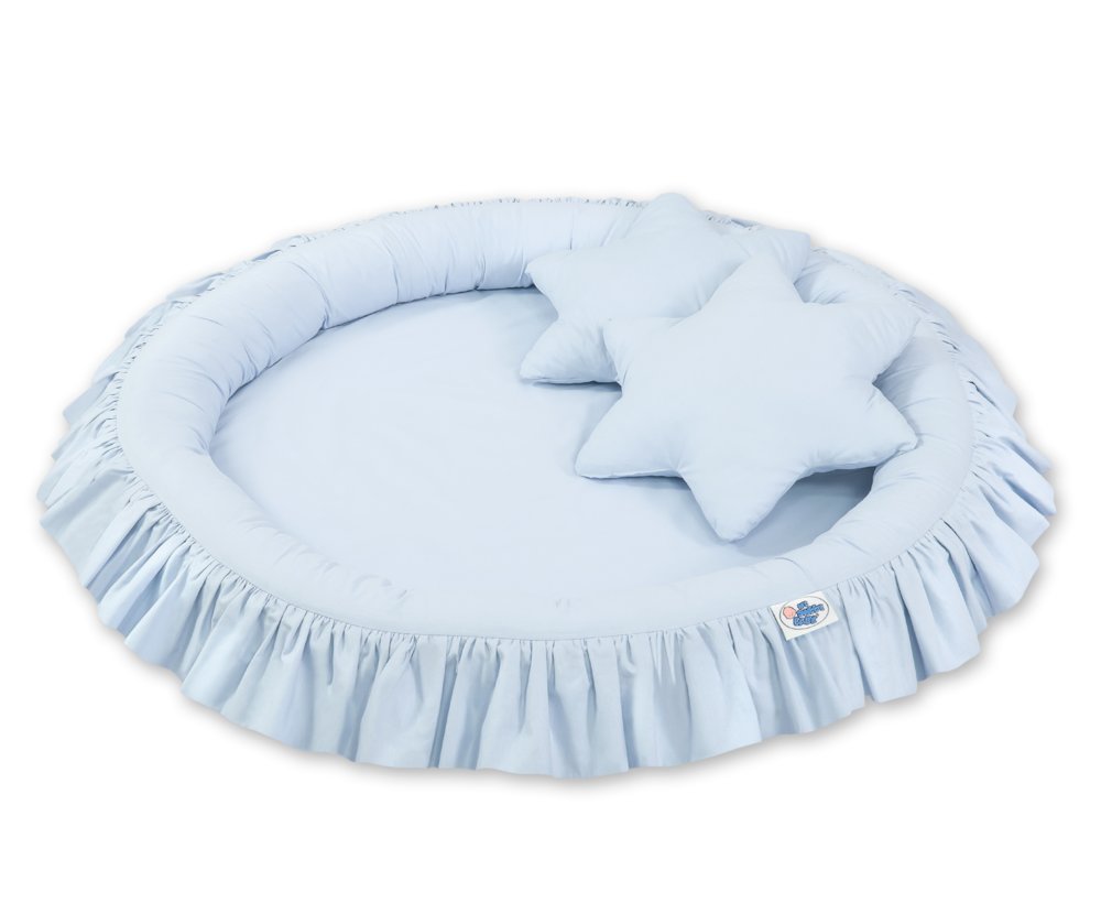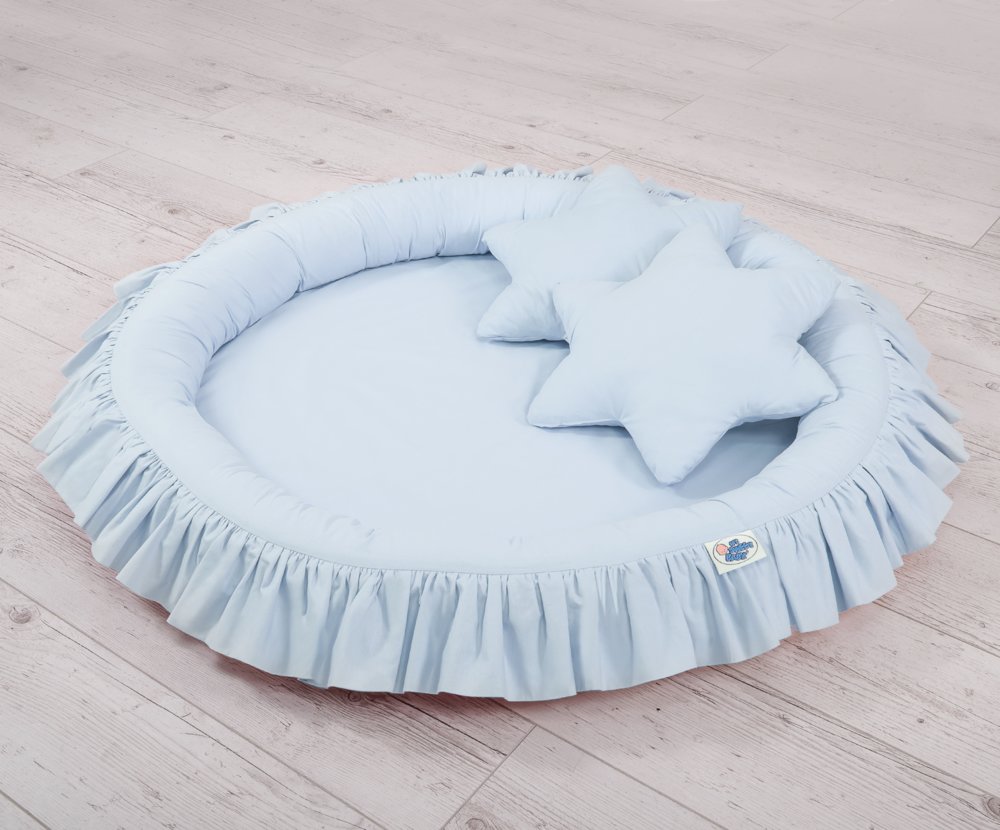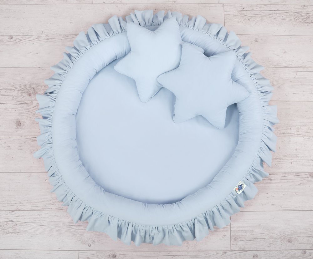 Dětské kulaté hnízdo s volánkem, může sloužit od prvních dnů života jako pohodlné a bezpečné místo pro miminko, později jako útulné místo pro hraní. Funkční a praktické hnízdečko může také posloužit jako mini bazén nebo podložka k baldachýnu. Široké, oblé a měkké stěny zajistí bezpečnou zábavu pro každé miminko.