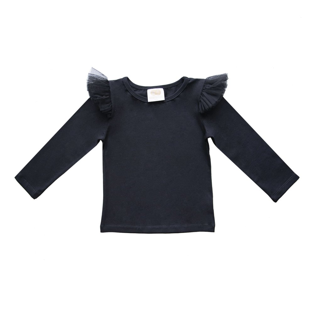 Dětské tričko s dlouhým rukávem a volánky Angel - černé