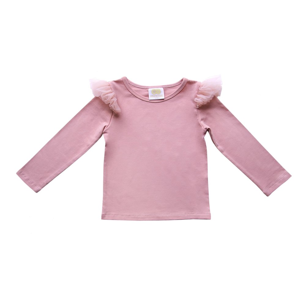 Dětské tričko s dlouhým rukávem a volánky Angel - pudrově růžové