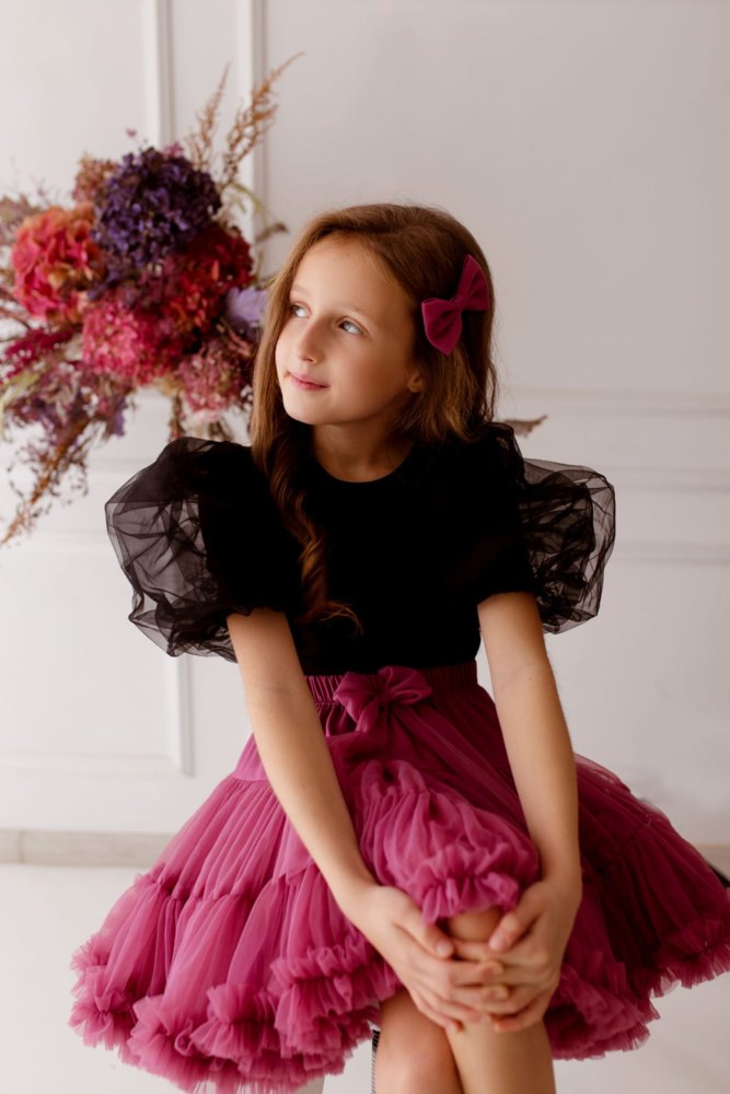 Dětské triko s pufovanými rukávy - černé