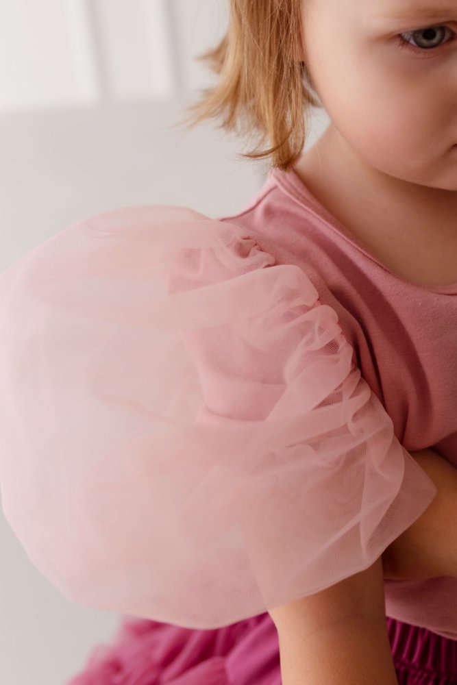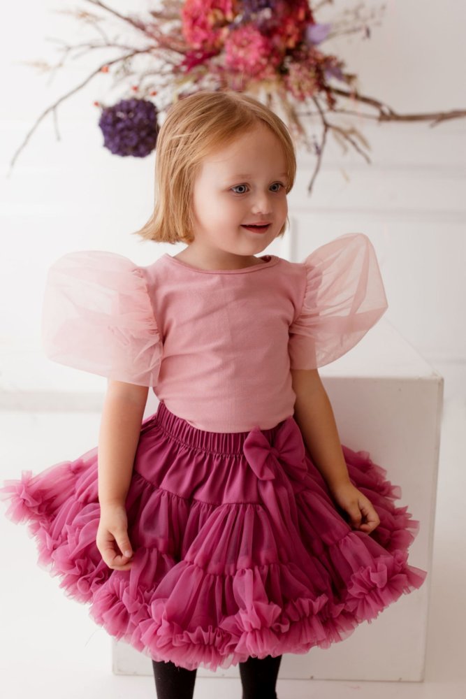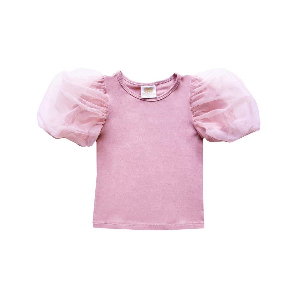 Dětské triko s pufovanými rukávy - pudrově růžové