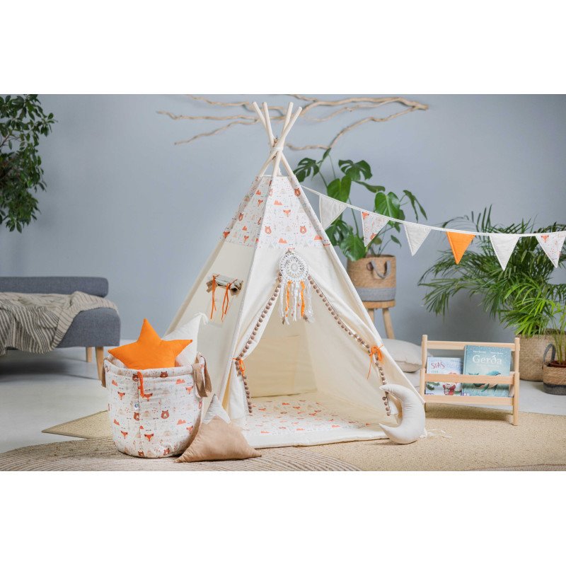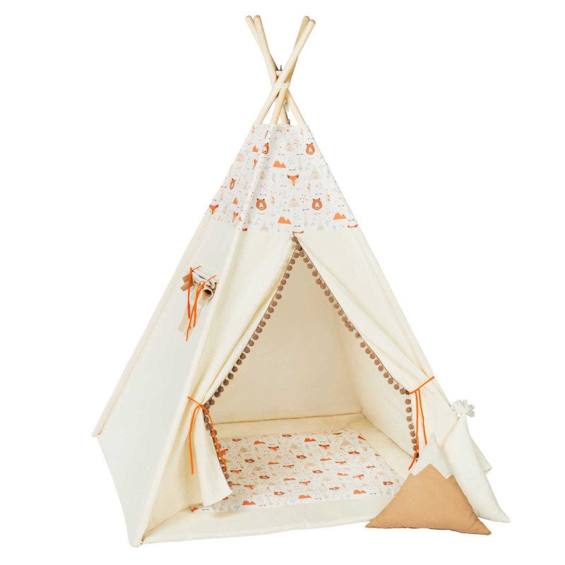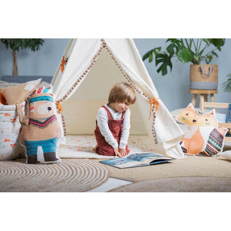 Dětský teepee stan Teddy pompem + podložka, dekorační polštářky