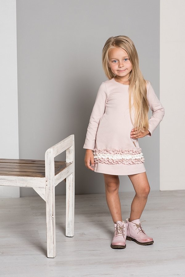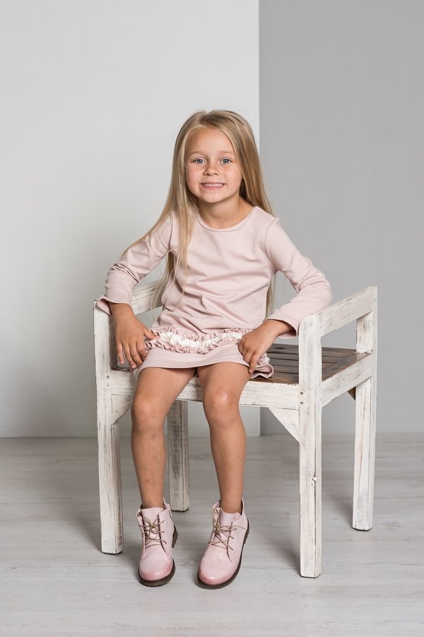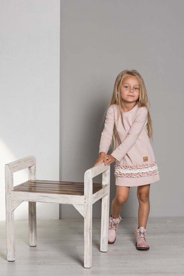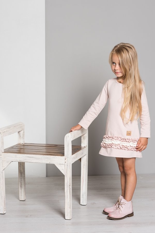 Dívčí šaty s dlouhým rukávem Cutie - pudrově růžové