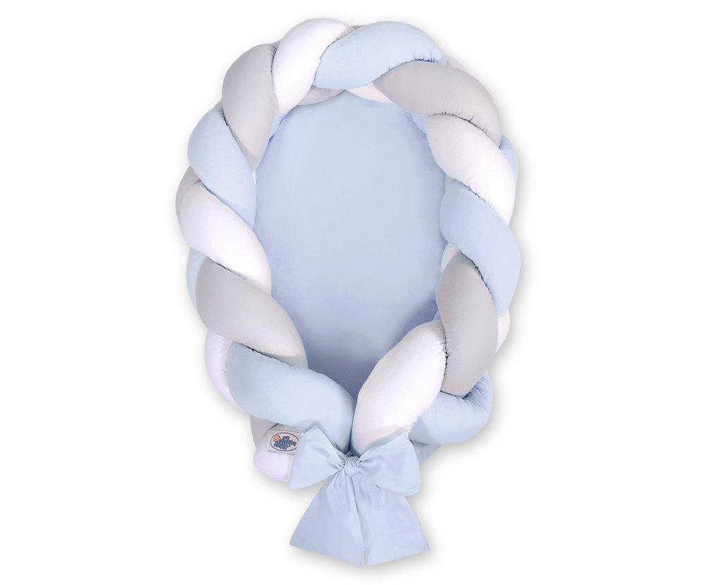Hnízdo pro miminko s pleteným mantinelem 2v1 - Modře bílo šedé