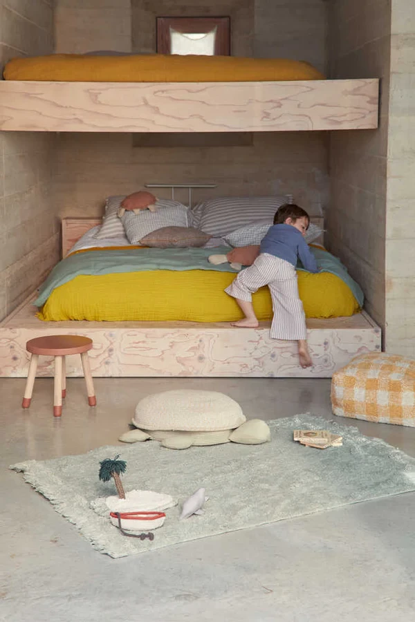 Děti si díky vzoru pláže na koberci mohou hrát, že jsou u moře.