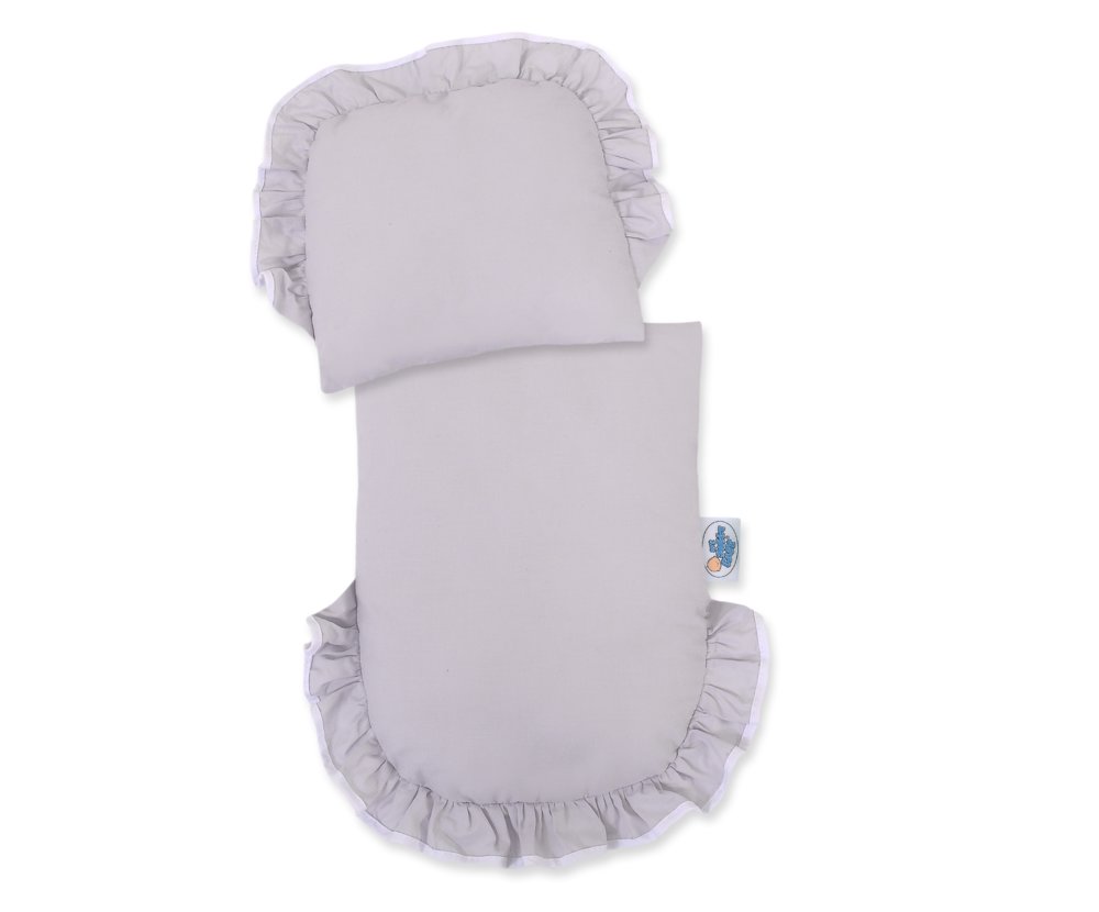 Kočárek pro panenky + polštářek, peřinka a výstelka - Přírodní s šedou