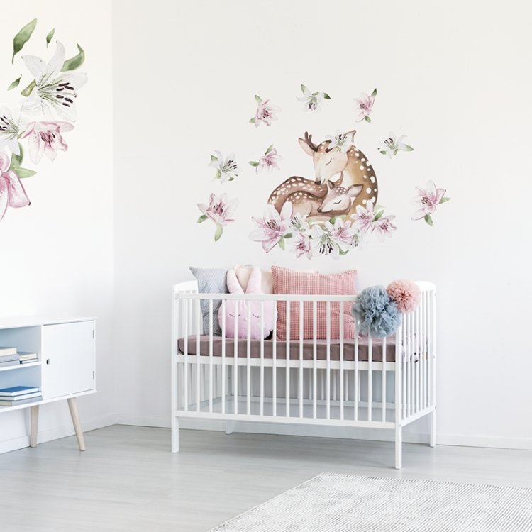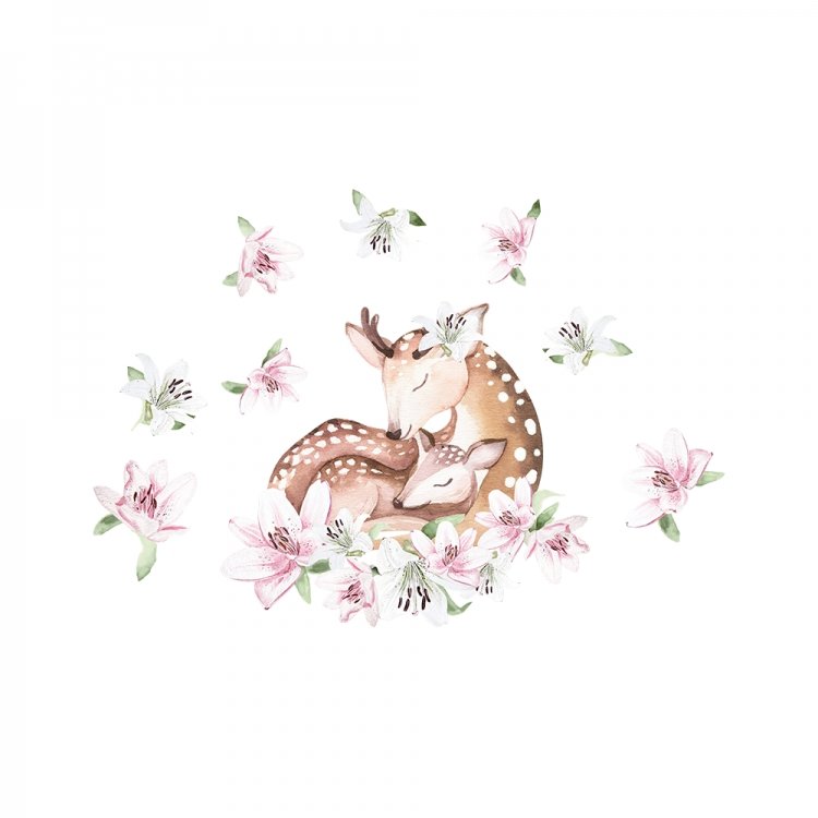 Samolepka na zeď Forest - spící jelenky s liliemi DK380
