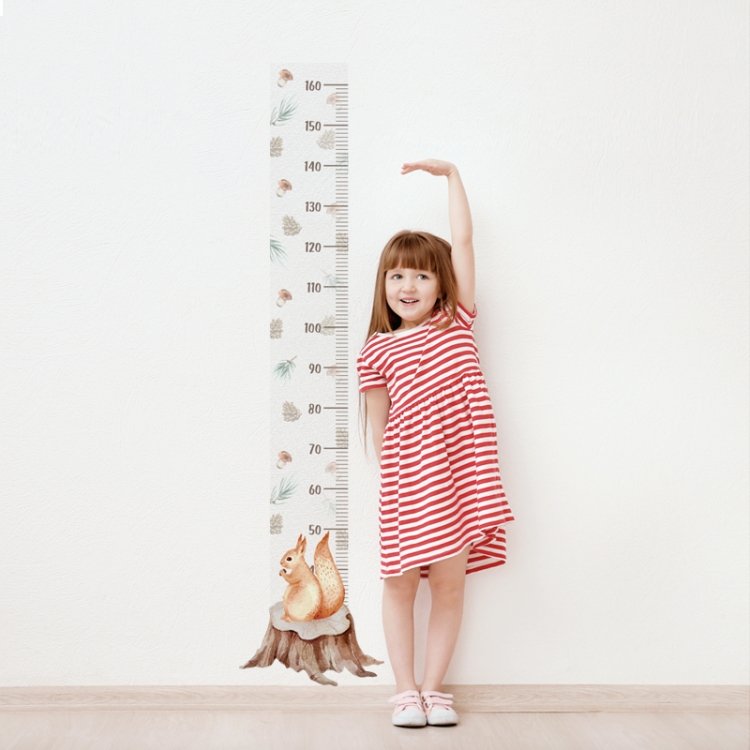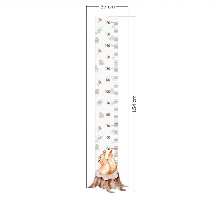 Stupnice začíná přibližně od 10 cm (pěn) až do výšky 160 cm. Proto si vyznačte bod před nalepením, například 50 cm a stupnici ze samolepky s označením 50 cm nalepte přesně v této výšce, kterou jste si vyznačili. V případě, že metr nelze přilepit přímo od země snadno jej rozřízněte v požadované výšce.