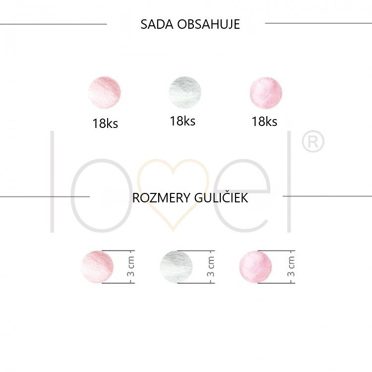 Tato sada samolepek kuliček se dokonale hodí k samolepce: Samolepka na zeď Pastel - zajíčky a kuličky DK290 - růžové ale samozřejmě kuličky budou nádherně vypadat iv jiné kombinaci, nebo jen tak nalepené samostatně.