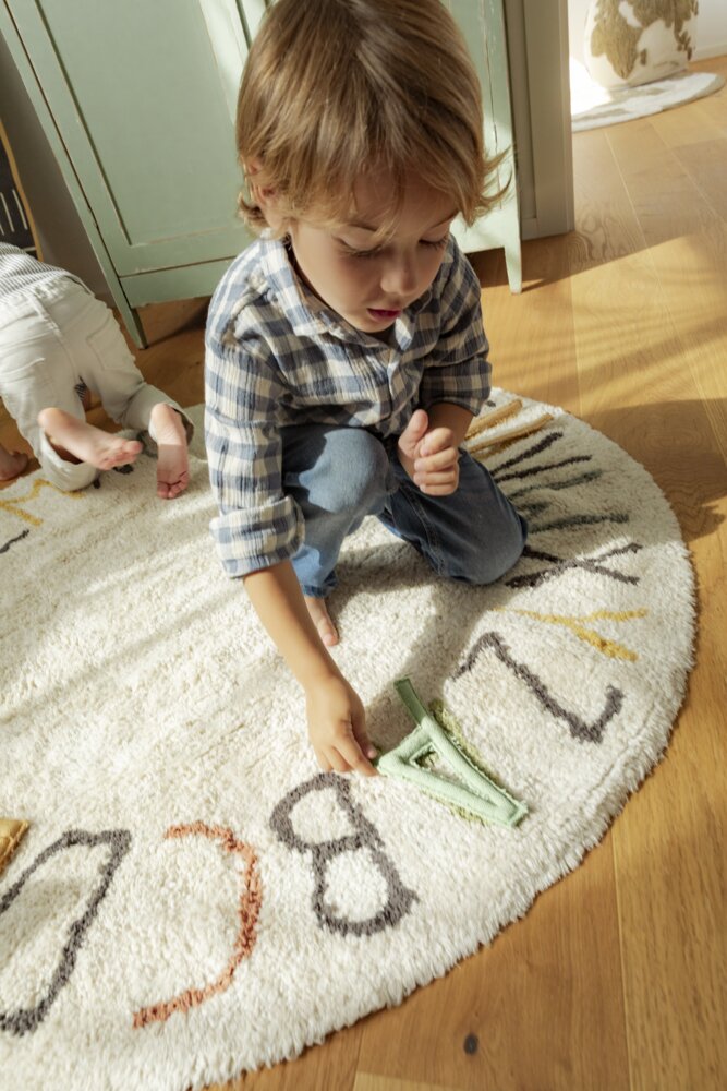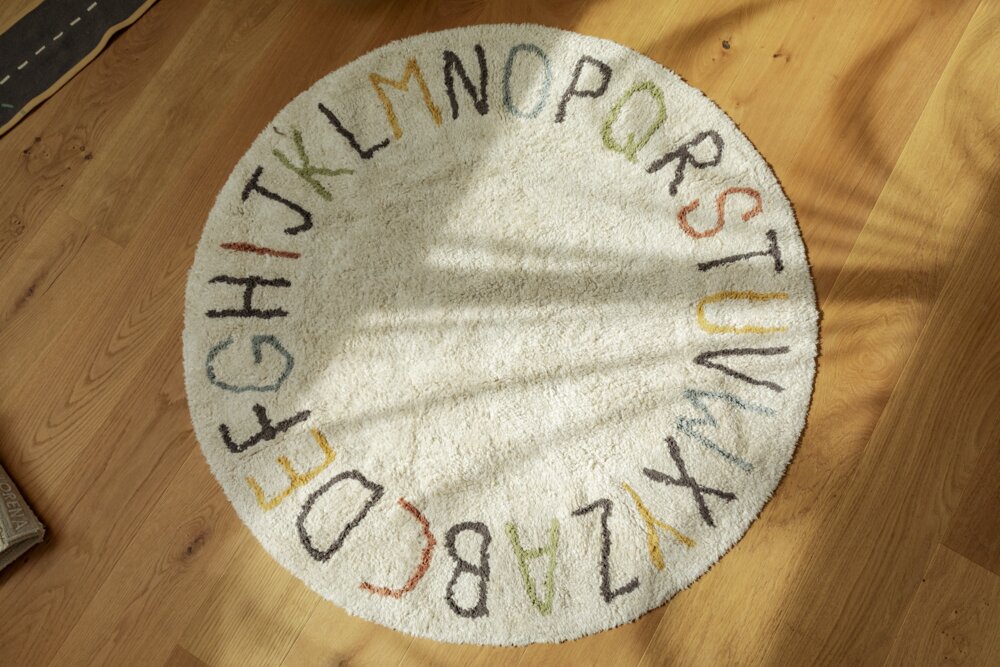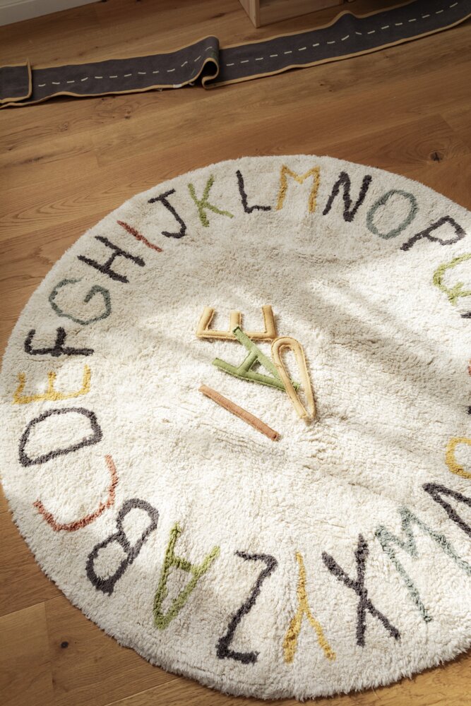 Kulatý koberec ABC Lorena Canals se bude hodit do pokojíčku pro holčičku i pro chlapečka. Minimalistický design se skandinávským nádechem dodá interiéru teplo a zútulni jej. Objevte radost z učení se abecedy! Tento kulatý koberec o rozměru 120 cm, inspirovaný nejprodávanějším vzorem, kombinuje kreativní hru s funkčním designem. Písmena abecedy jsou pečlivě tkané v barevných odstínech, které kontrastují s jemným pozadím v přírodních a slonovinových tónech.