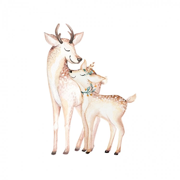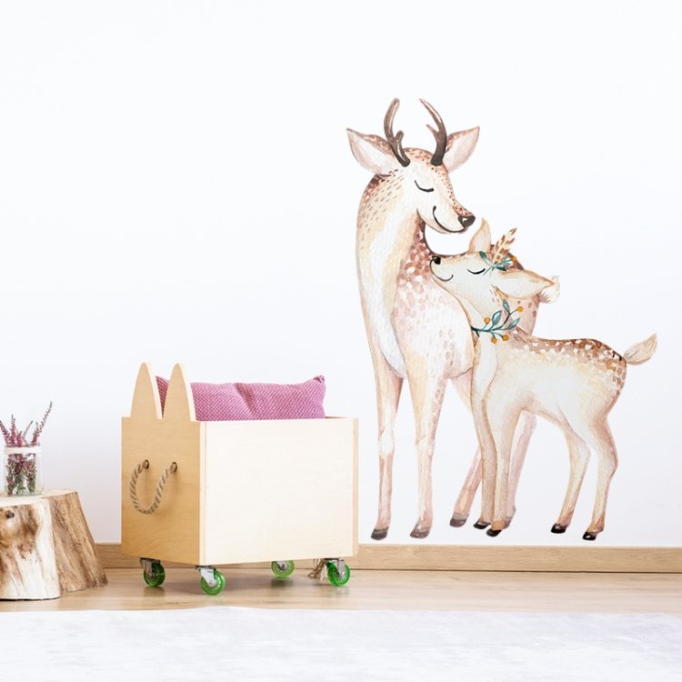 Samolepka je vytištěna na matné fólii. Samolepka obsahuje pár jelenků. Může zdobit nejen stěny, ale také nábytek a okna a vytvořit tak jedinečný design dětského pokojíčku.