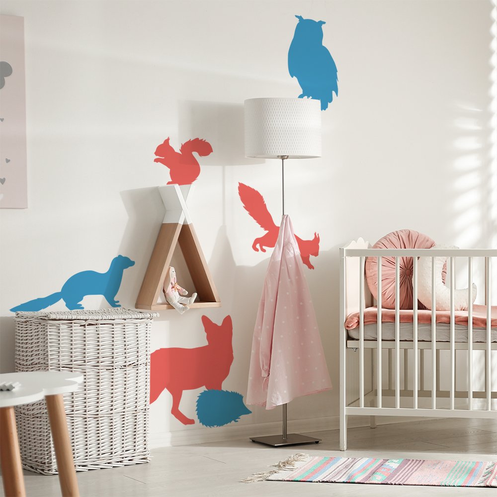 Samolepka je vytištěna na matné fólii. Samolepku tvoří lasice, sova, ježek, veverky a liška. Může zdobit nejen stěny, ale i nábytek a okna a vytvořit tak jedinečný design dětského pokojíčku.