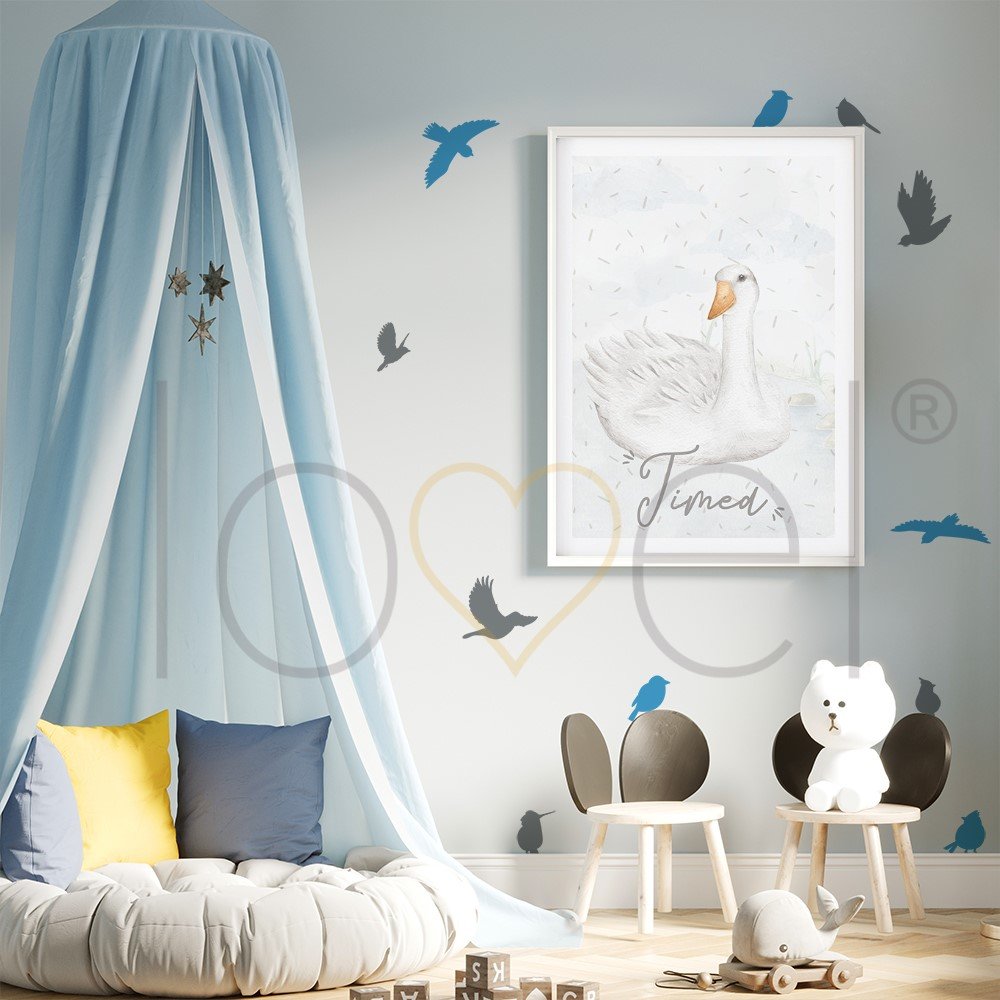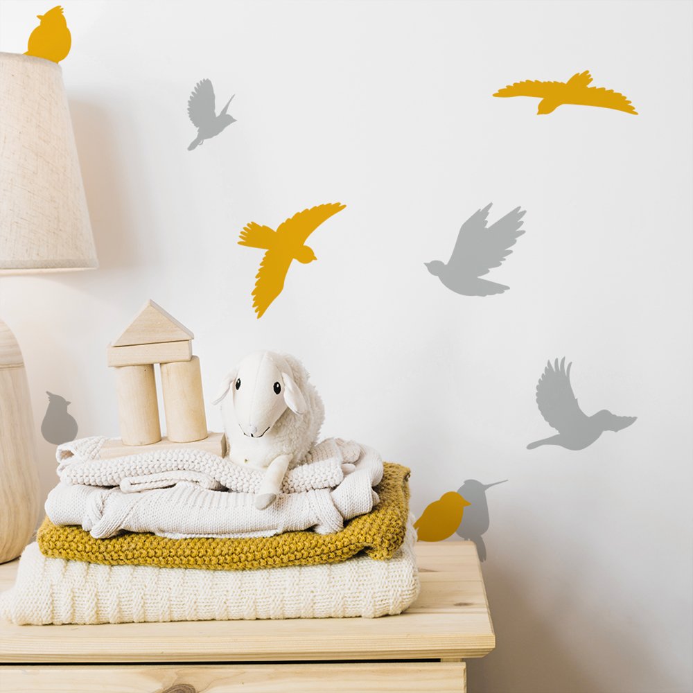 Samolepka je vytištěna na matné fólii. Samolepku tvoří ptáčky. Může zdobit nejen stěny, ale i nábytek a okna a vytvořit tak jedinečný design dětského pokojíčku.