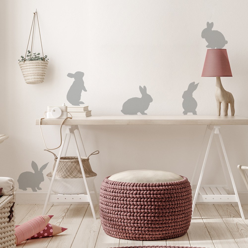 Samolepka je vytištěna na matné fólii. Samolepku tvoří zajíci. Může zdobit nejen stěny, ale i nábytek a okna a vytvořit tak jedinečný design dětského pokojíčku.