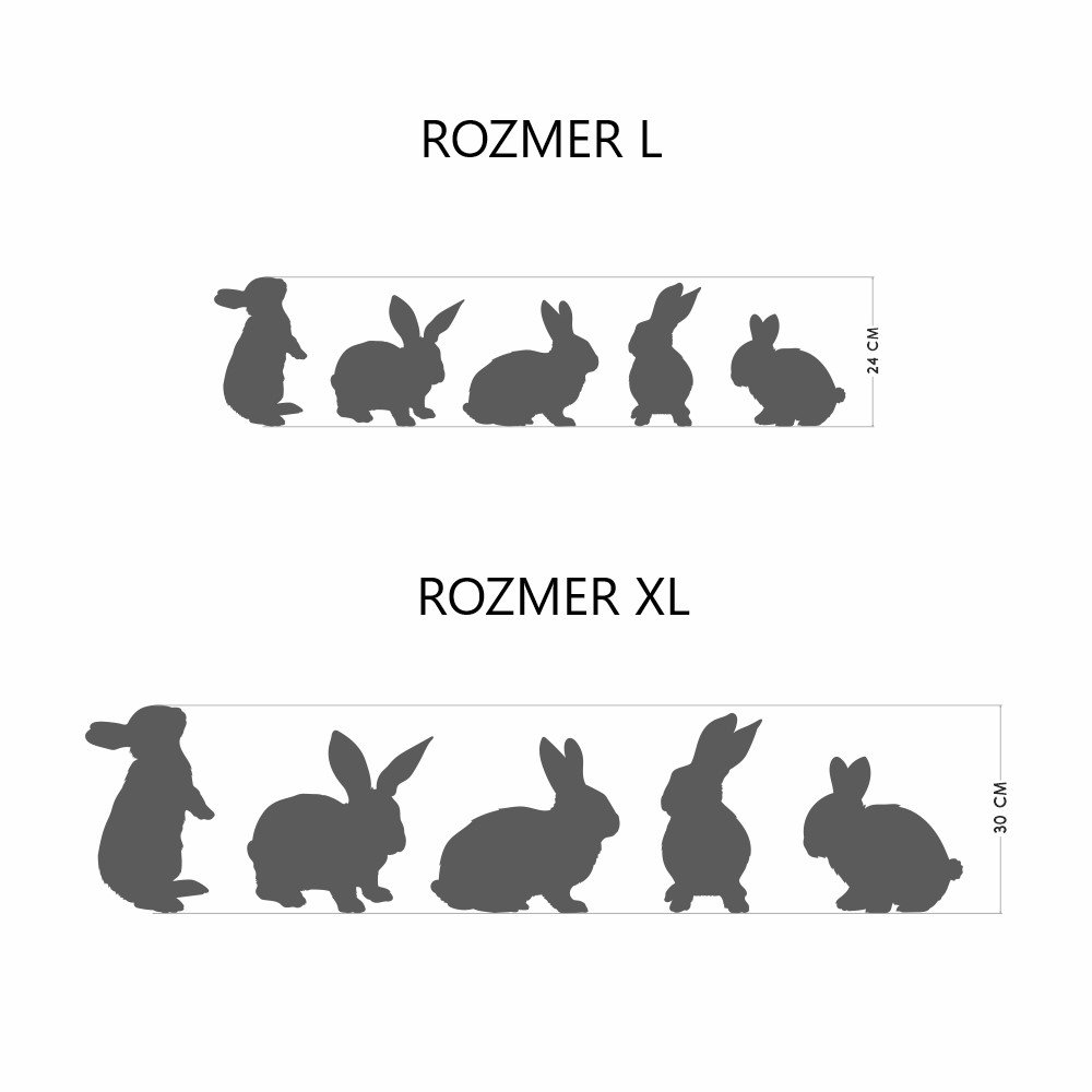 • králíci: (š x v): 12 - 21 x 18 - 24 cm