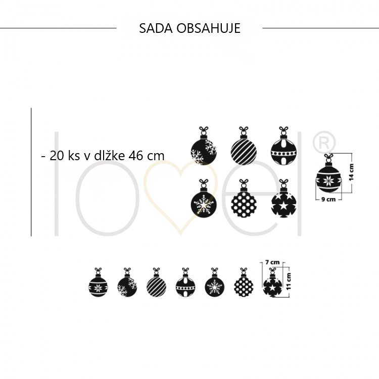 • 14 x mix vánočních koulí (š x v): 9 x 14 cm