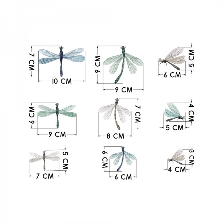 Samolepka je vytištěna na matné fólii. Samolepku tvoří vážky. Může zdobit nejen stěny, ale také nábytek a okna a vytvořit tak jedinečný design dětského pokojíčku.