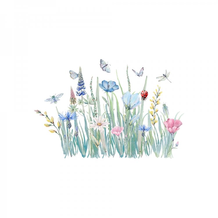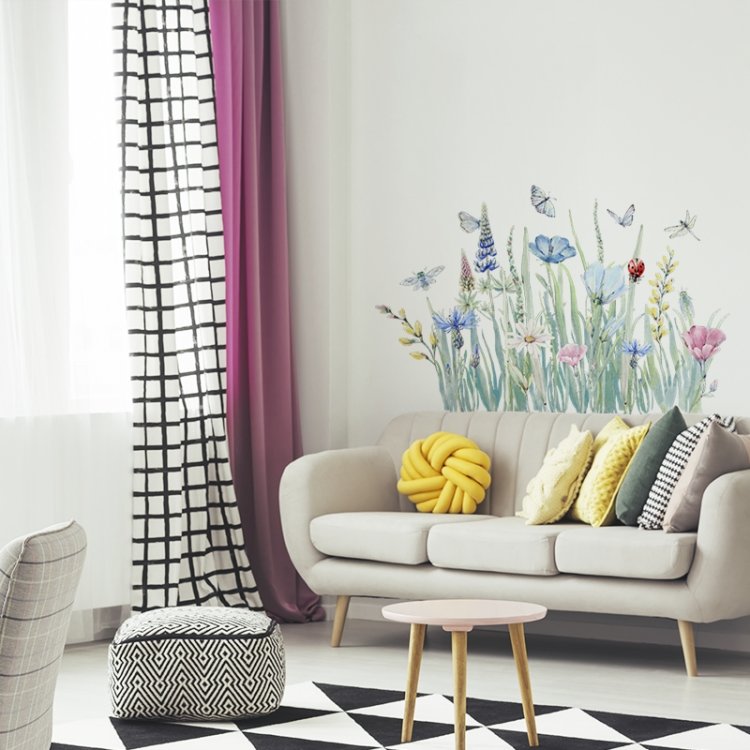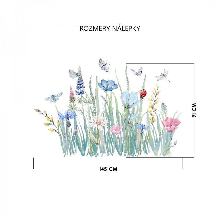 Proměňte každý pokojíček na místo plné kvetoucích květin, rostlin a létajícího hmyzu. Tato úžasná samolepka louky vnese do každého pokojíčku pocit přírody, odpočinku.