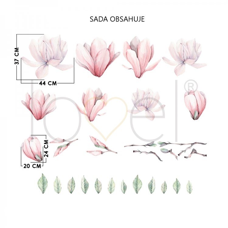 • 9x květy magnólií: (š x v): 44 x 37 cm, 20 x 24 cm