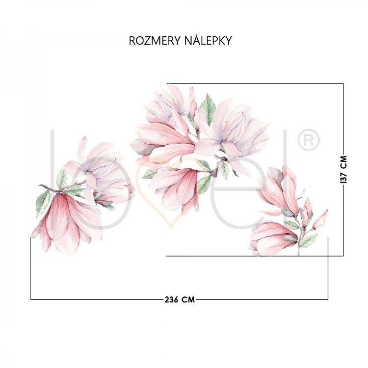 Samolepka je vytištěna na matné fólii. Samolepku tvoří magnolie, pupeny magnolie a lístky. Může zdobit nejen stěny, ale také nábytek a okna a vytvořit tak jedinečný design dětského pokojíčku.