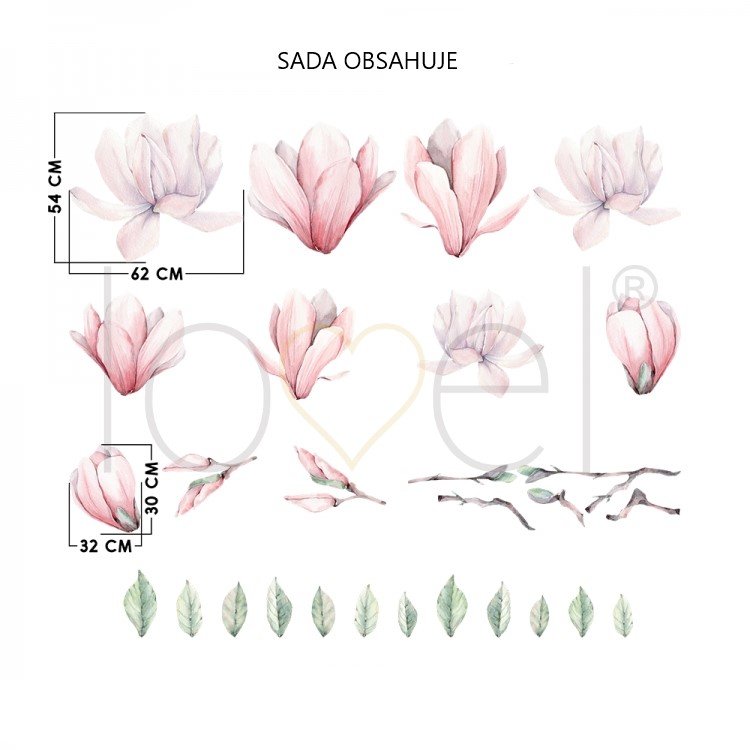 • 9x květy magnólií: (š x v): 62 x 54 cm, 32 x 30 cm