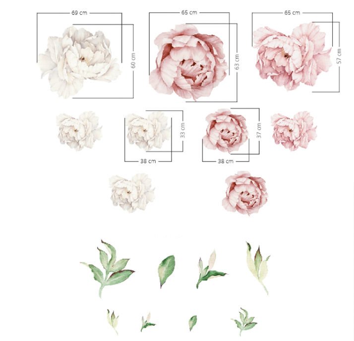 Samolepka je vytištěna na matné fólii. Samolepku tvoří pivoňky a lístky. Může zdobit nejen stěny, ale také nábytek a okna a vytvořit tak jedinečný design dětského pokojíčku.