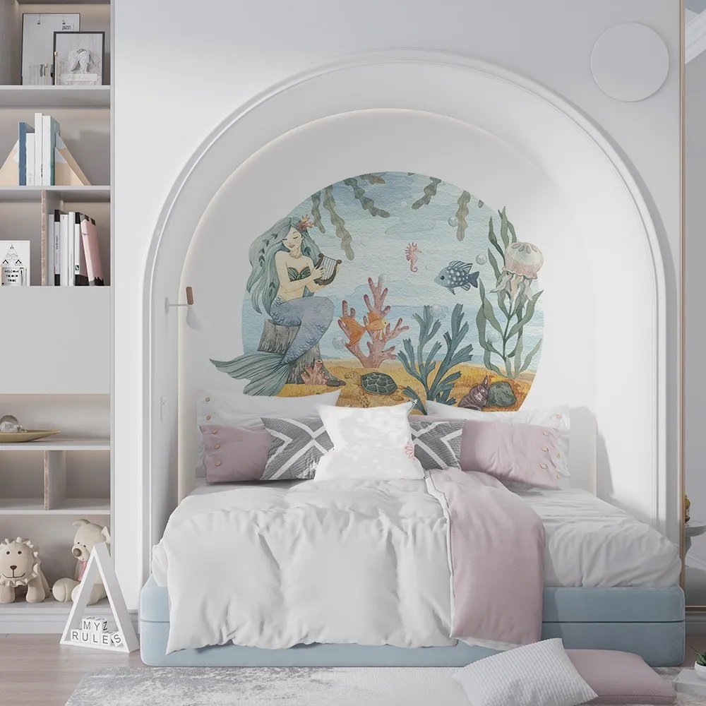 Nálepka na zeď s potiskem, vyřezaná z matné fólie s motivem podmořského světa s mořskou pannou, potažená ...