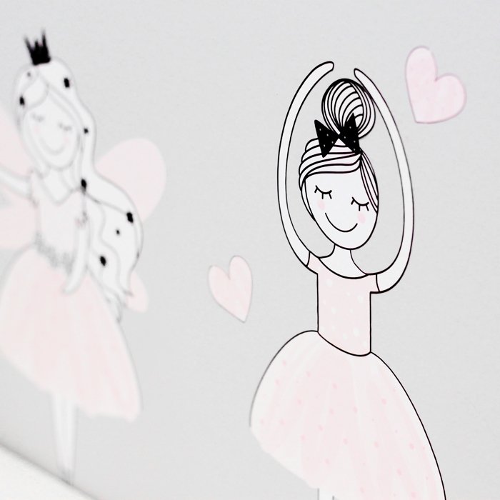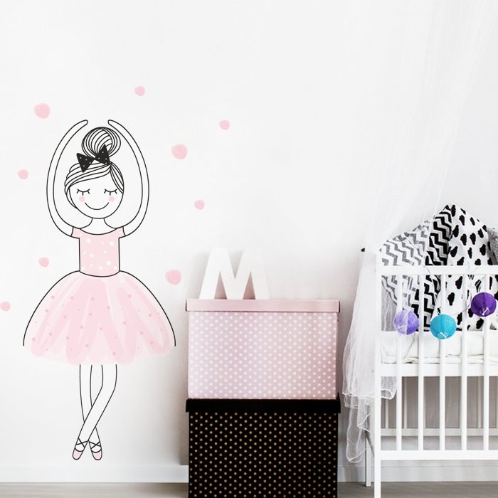 Samolepka je vytištěna na matné fólii. Samolepka obsahuje baletku a kuličky různých velikostí. Může zdobit nejen stěny, ale také nábytek a okna a vytvořit tak jedinečný design dětského pokojíčku.