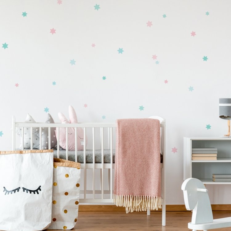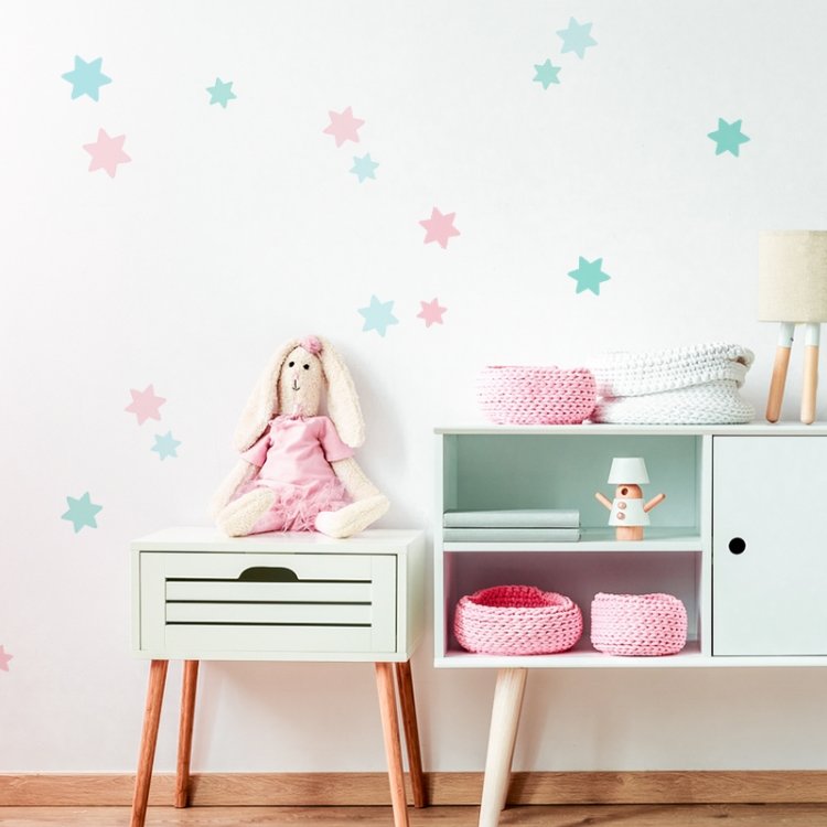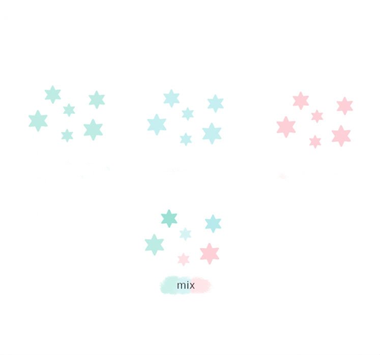 Samolepka je dostupná v pudrově růžové, mintové a modré barvě, které můžete objednat samostatně nebo jako mix všech tří barev. Hvězdičky můžete nalepit dle vlastního uvážení.