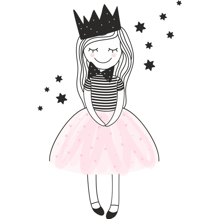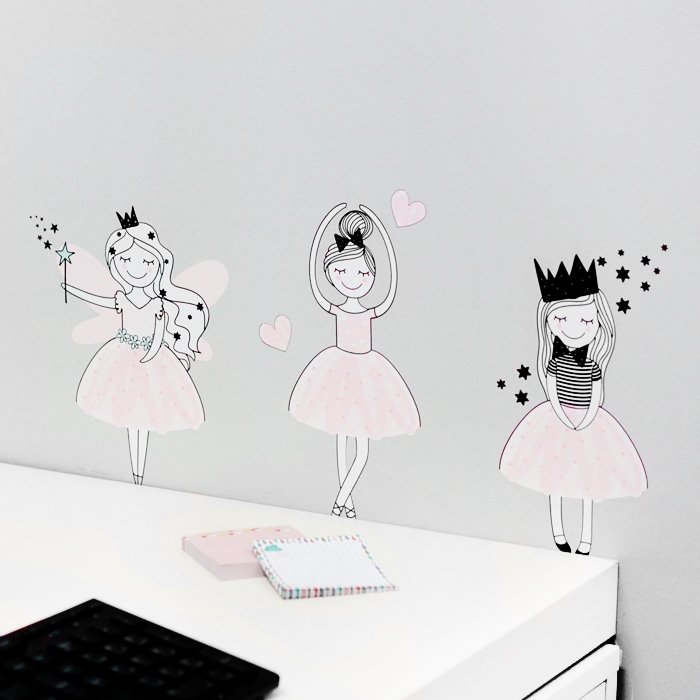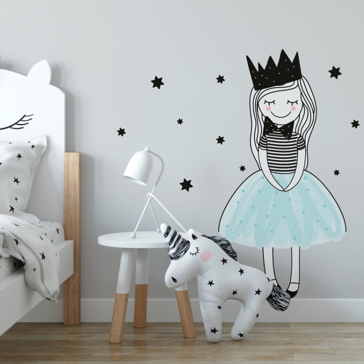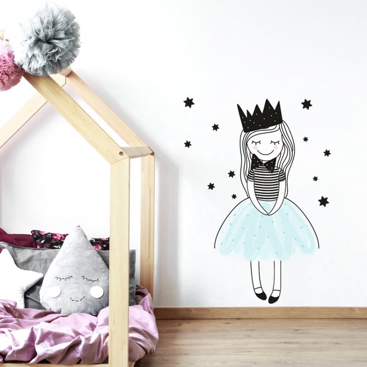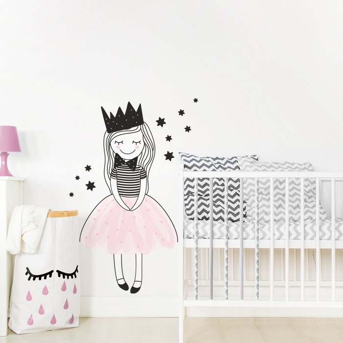Samolepka je vytištěna na matné fólii. Samolepka obsahuje princeznu a hvězdičky různých velikostí. Může zdobit nejen stěny, ale také nábytek a okna a vytvořit tak jedinečný design dětského pokojíčku.