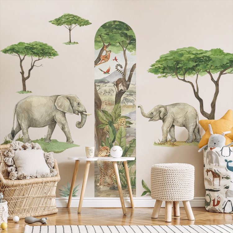 Samolepky na zeď z kolekce Safari dokonale ozdobí každý dětský pokojíček.