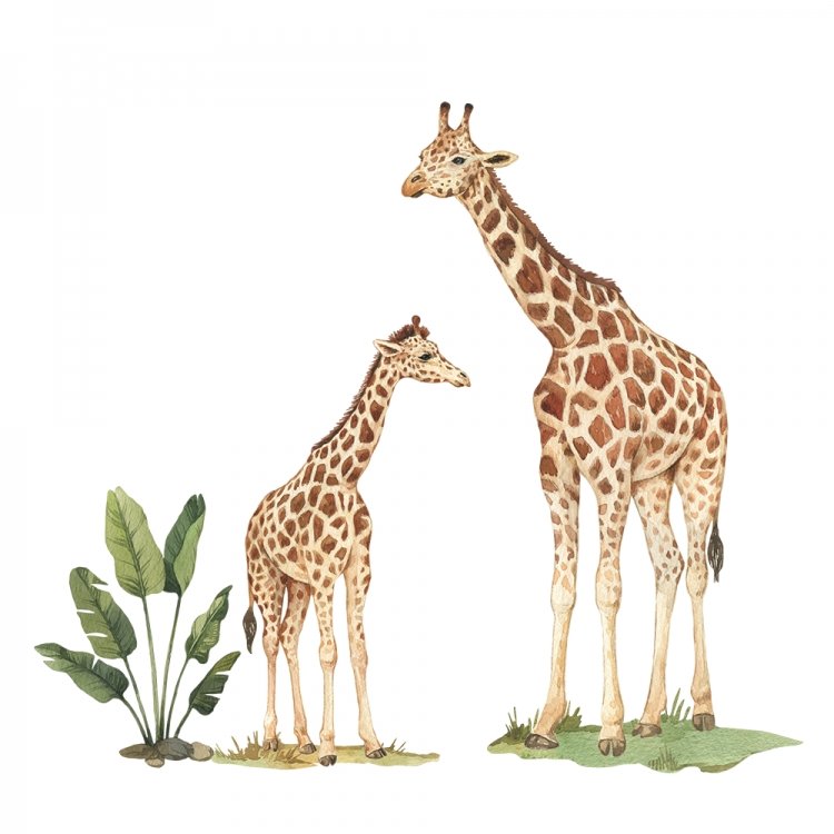 Samolepka je vytištěna na matné fólii. Samolepku tvoří žirafy, části trávy a rostlinu. Může zdobit nejen stěny, ale také nábytek a okna a vytvořit tak jedinečný design dětského pokojíčku.
