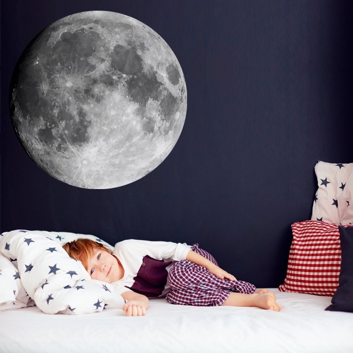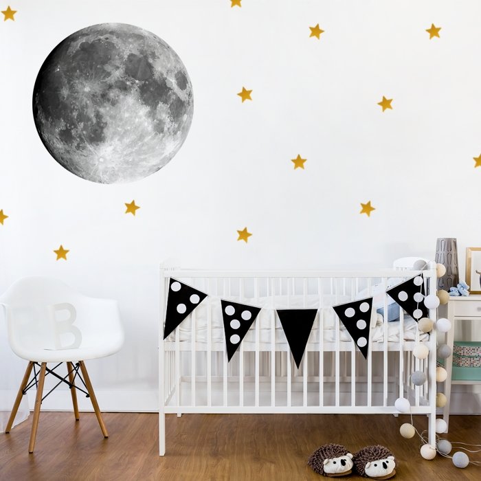 Samolepka je vytištěna na matné fólii. Samolepku tvoří měsíc. Samolepka může zdobit nejen stěny, ale také nábytek a okna a vytvořit tak jedinečný design dětského pokojíčku.