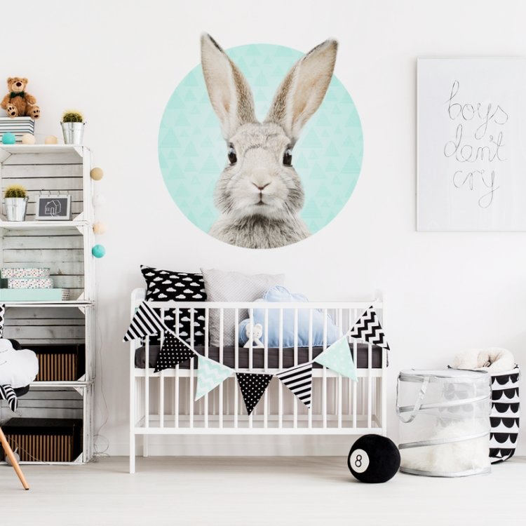 Samolepka je vytištěna na matné fólii. Samolepka obsahuje zajíčka. Může zdobit nejen stěny, ale také nábytek a okna a vytvořit tak jedinečný design dětského pokojíčku.