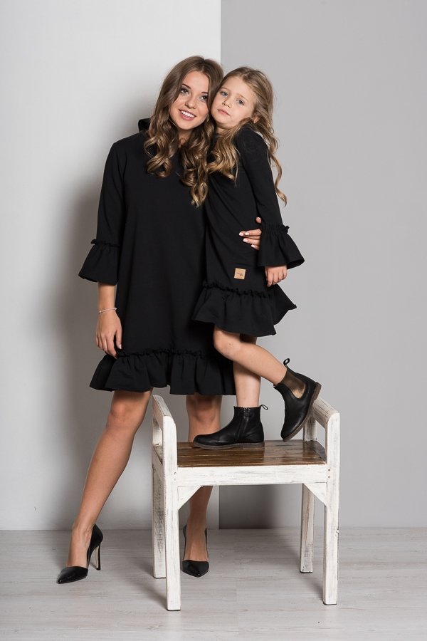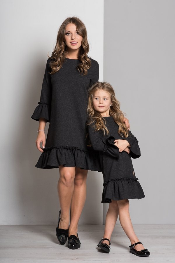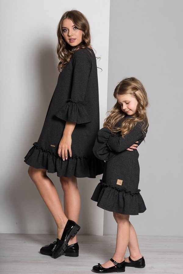 Stylové dámské a dětské šaty s romantickým nádychodom. Pohodlné šaty s 3/4 zvonovými rukávy a spodním rozkošným řasením. Vytvořte krásnou kombinaci oblečení šaty mama + dcera.