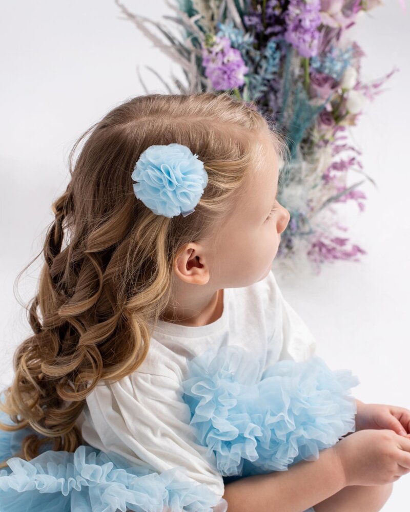 Pom pom sponka krásně doladí jakýkoli účes malé princezny a může se stát stejně jako prefektním doplňkem k Petti sukni Dolly Princess, z naší nabídky, která je stejné barvy jako sponka.