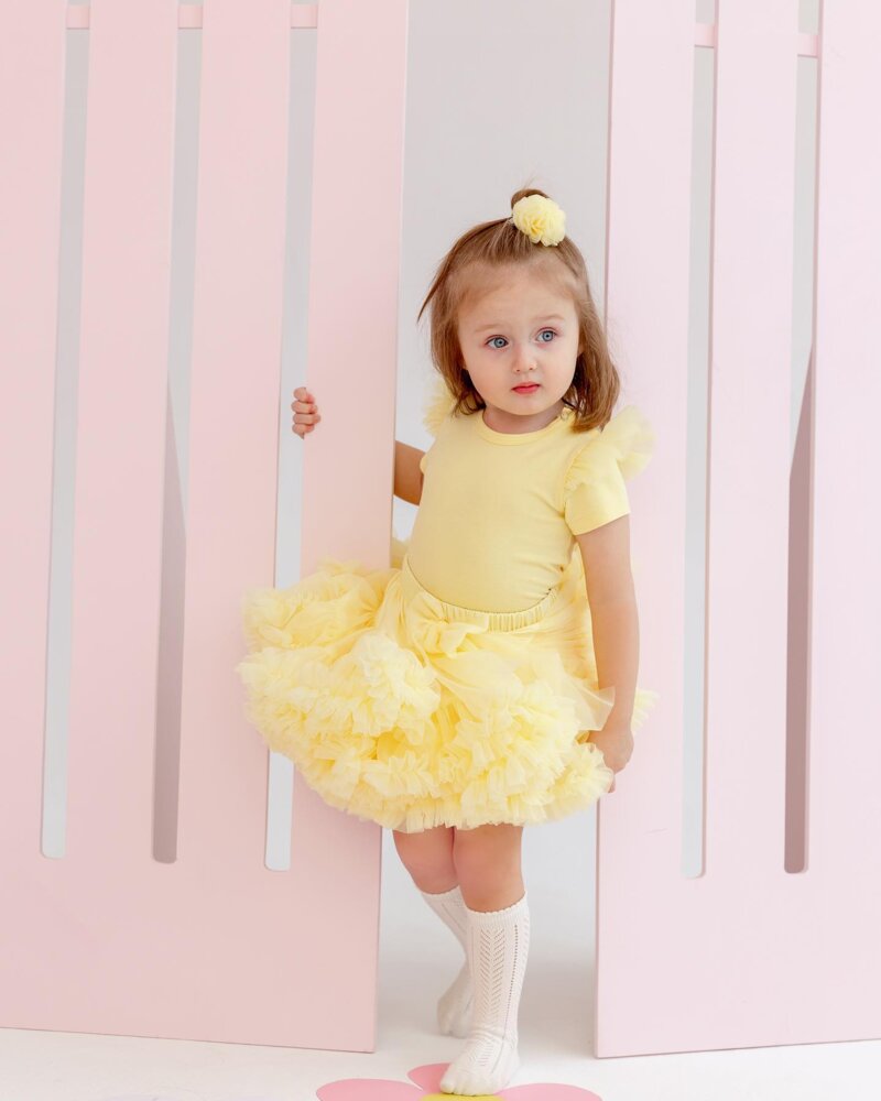 Pom pom sponka krásně doladí jakýkoli účes malé princezny a může se stát stejně jako prefektním doplňkem k Petti sukni Dolly Princess, z naší nabídky, která je stejné barvy jako sponka.