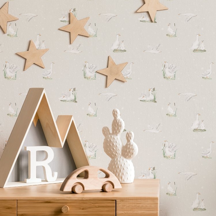 Vinylová tapeta Country husy s hvězdičkami W32 - béžová