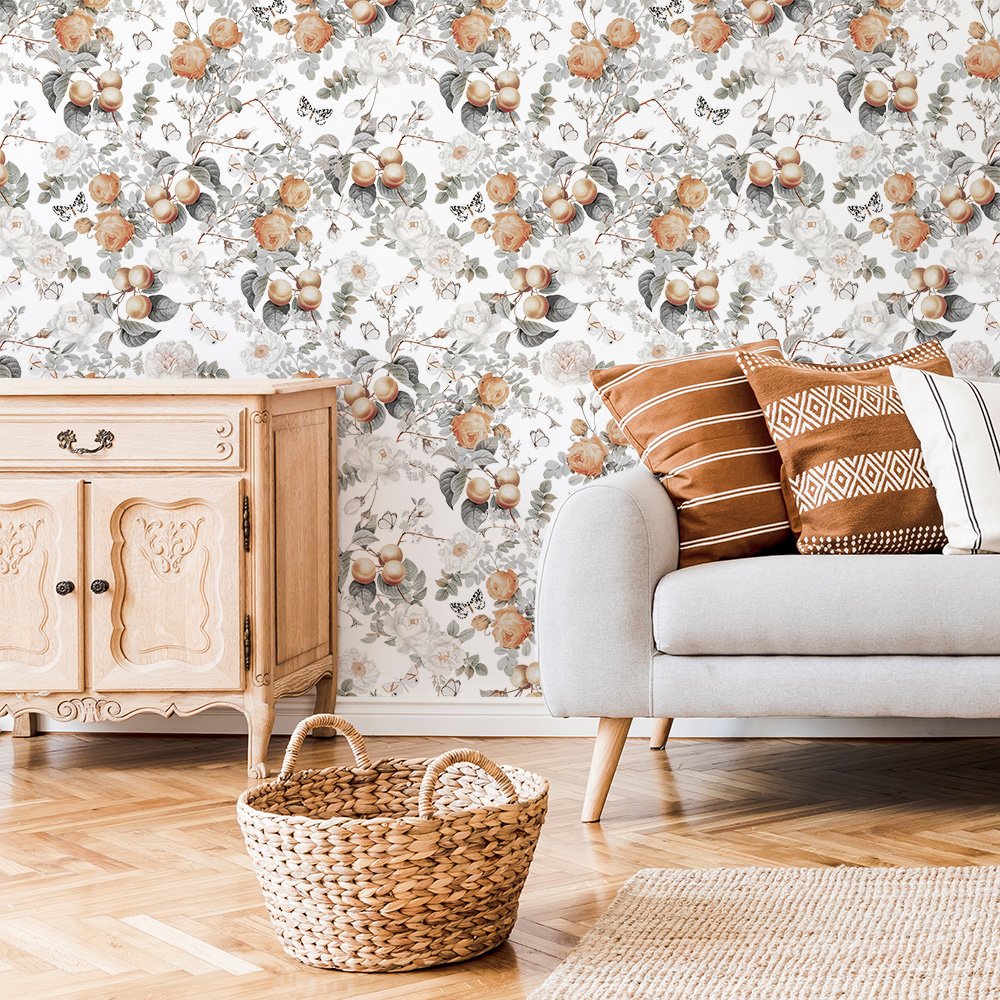 Nádherná tapeta s motivem květin a broskví bude vypadat skvěle v téměř každé místnosti. Unikátn&ia ...
